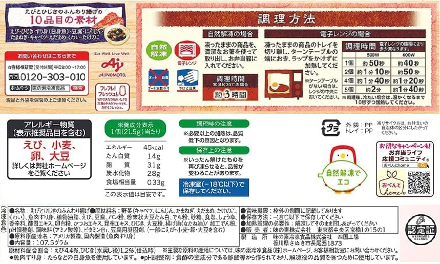 [冷凍]味の素 えびとひじきのふんわり揚げ 5個×24袋 | えびやひじき等10品目の素材を白身魚で包んで揚げたお弁当のおかずです。