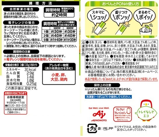 - [冷凍]味の素 おべんとPONとり天 5個入 90g×12袋