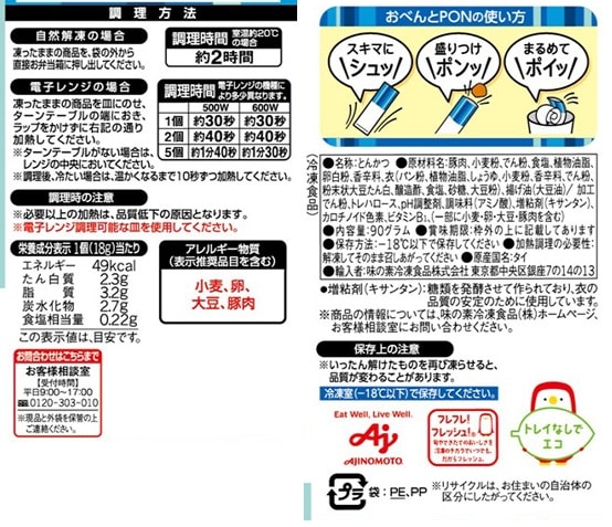 - [冷凍]味の素 おべんとPONとんかつ 5個入 90g×4袋