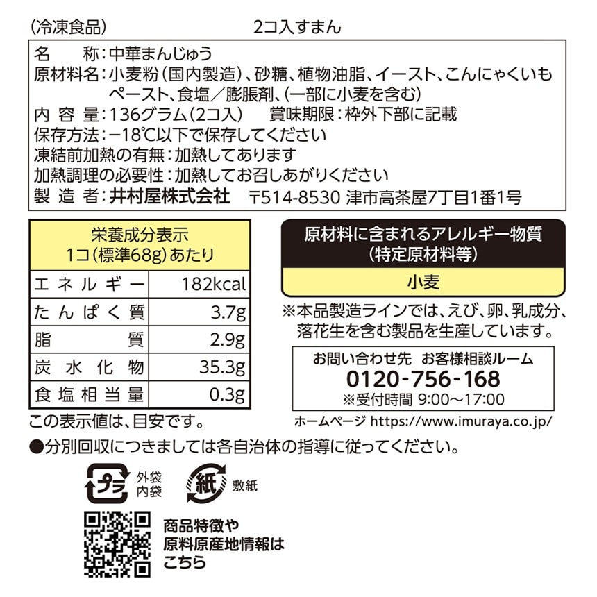 [冷凍]井村屋 2コ入すまん 136g×8袋 | 具がなくてすまん!?皮だけの「素の中華まん」です。