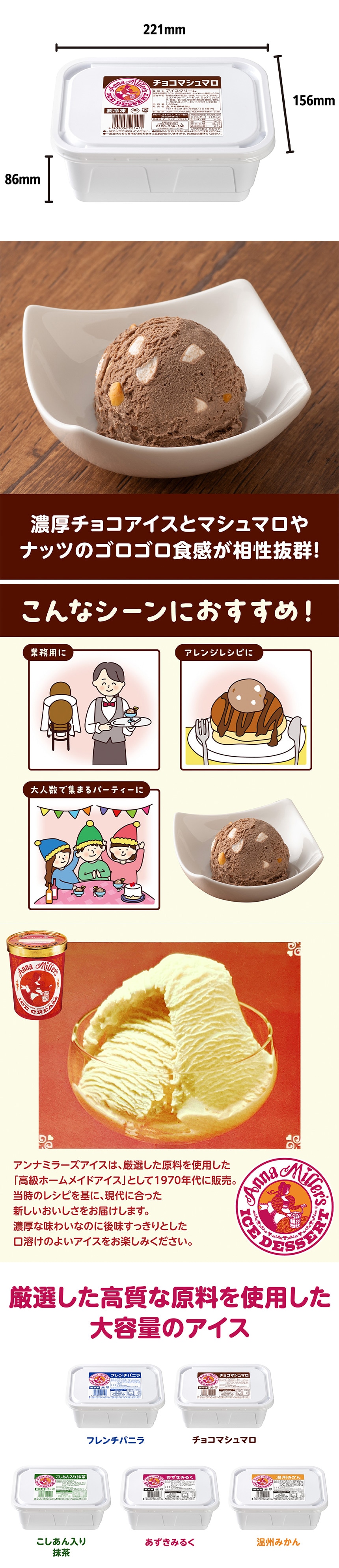 [冷凍]井村屋 アンナミラーズアイス チョコマシュマロ 2000ml×2個 | 豊富町生クリームフランス産ココアパウダーを使用した贅沢でラグジュアリーな味わいを楽しめるアイスです。