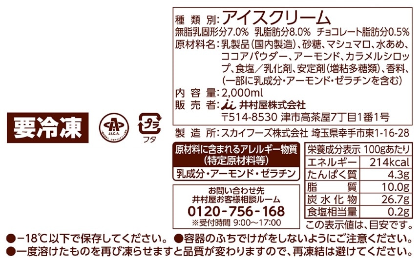 - [冷凍]井村屋 アンナミラーズアイス チョコマシュマロ 2000ml×2個