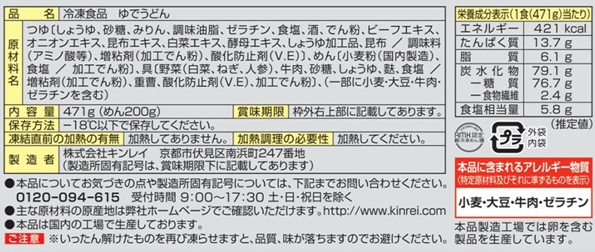 - [冷凍]キンレイ お水がいらない京風だしのおうどん 476g...