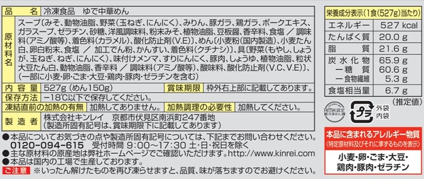 - [冷凍]キンレイ お水がいらない札幌味噌ラーメン 1食入×6袋