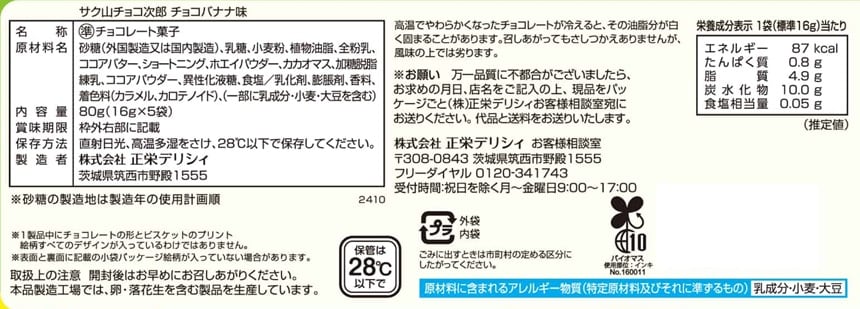 [14個]正栄デリシィ サク山チョコ次郎 チョコバナナ味 80g | チョコ次郎のバナナ味チョコ菓子