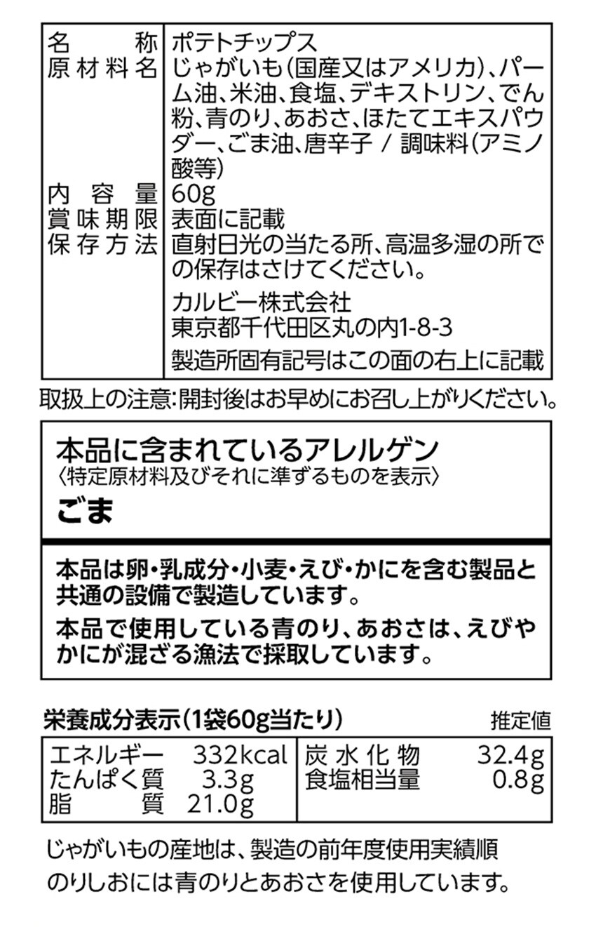 - カルビー ポテトチップス のりしおW 60g