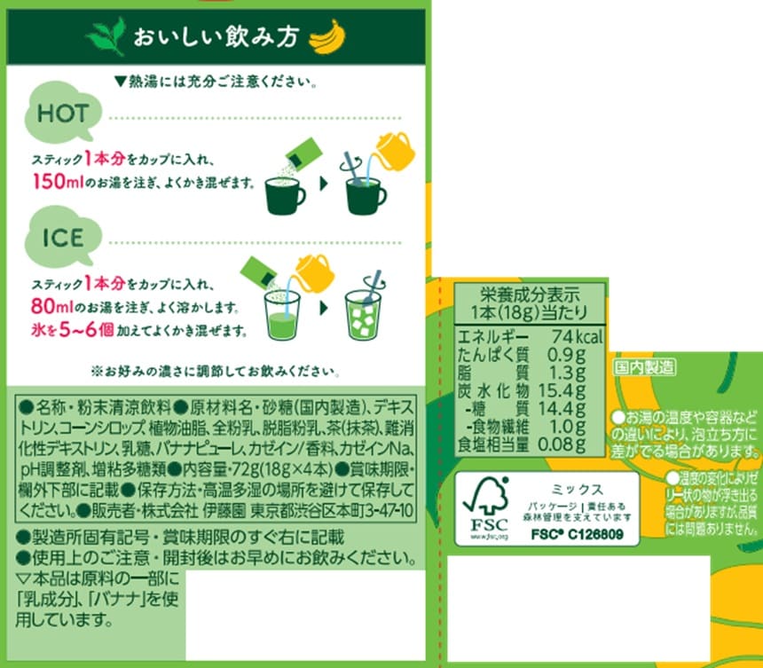 - ・matcha LOVE NEW YORK 抹茶バナナラテ スティック 計64杯(72g(18g×4本)×16個)
