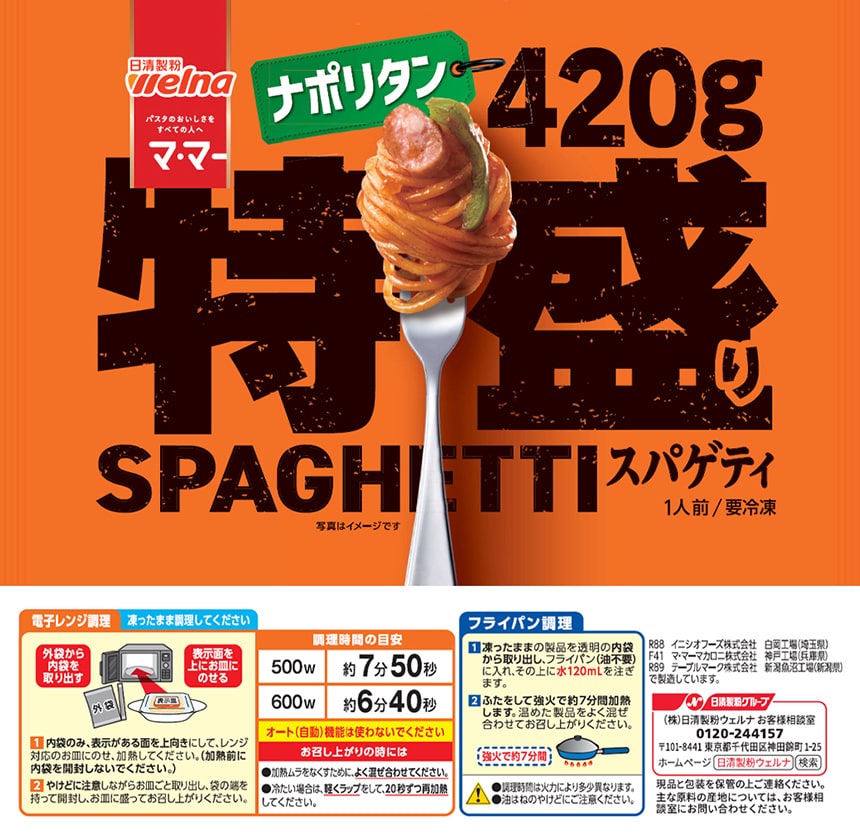 - [冷凍]日清製粉ウェルナ マ・マー 特盛りスパゲティ ナポリタン 420g×6個