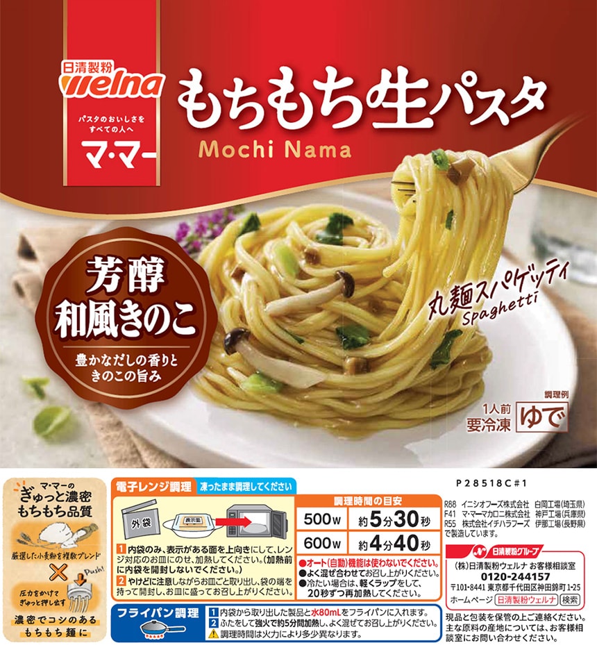 [冷凍]日清製粉ウェルナ マ・マー もちもち生パスタ 芳醇和風きのこ 270g×7個 | こだわりのもちもち食感スパゲッティ!芳醇なだしの香りときのこの旨みが広がる奥深い味わい。