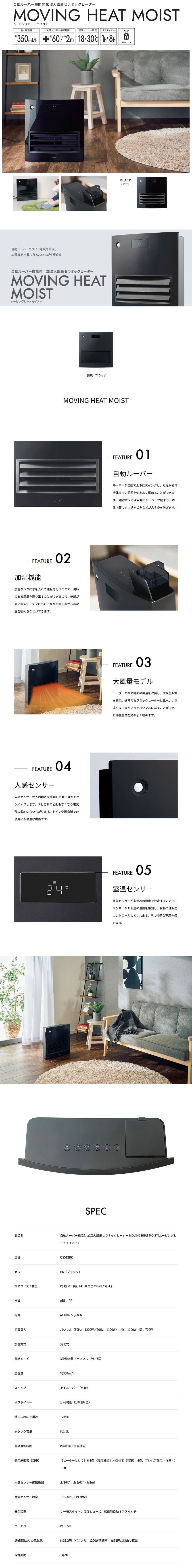 - QUADS(クワッズ)/自動ルーバー機能付 加湿大風量セラミックヒーター「ムービングヒートモイスト」(人感センサー付)/QS512BK