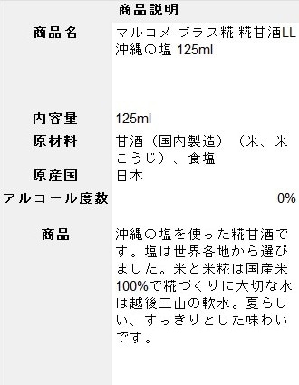- プラス糀 糀甘酒 LL沖縄の塩 125ml