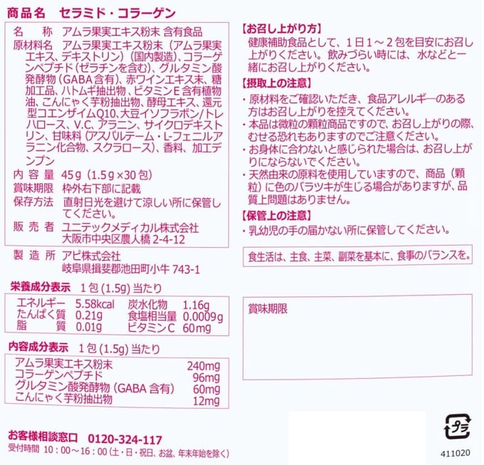 - セラミド・コラーゲン 45g(1.5g×30包)