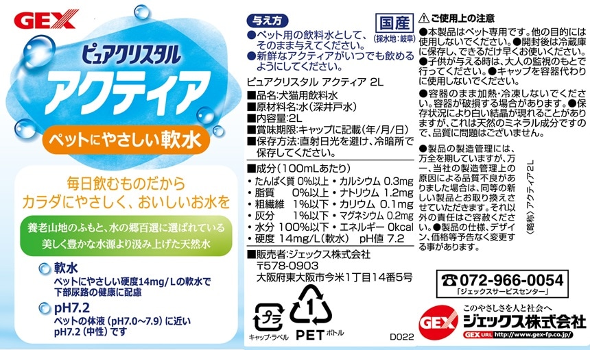 [12個]ジェックス ピュアクリスタル アクティア 2L | ペットにやさしい軟水!