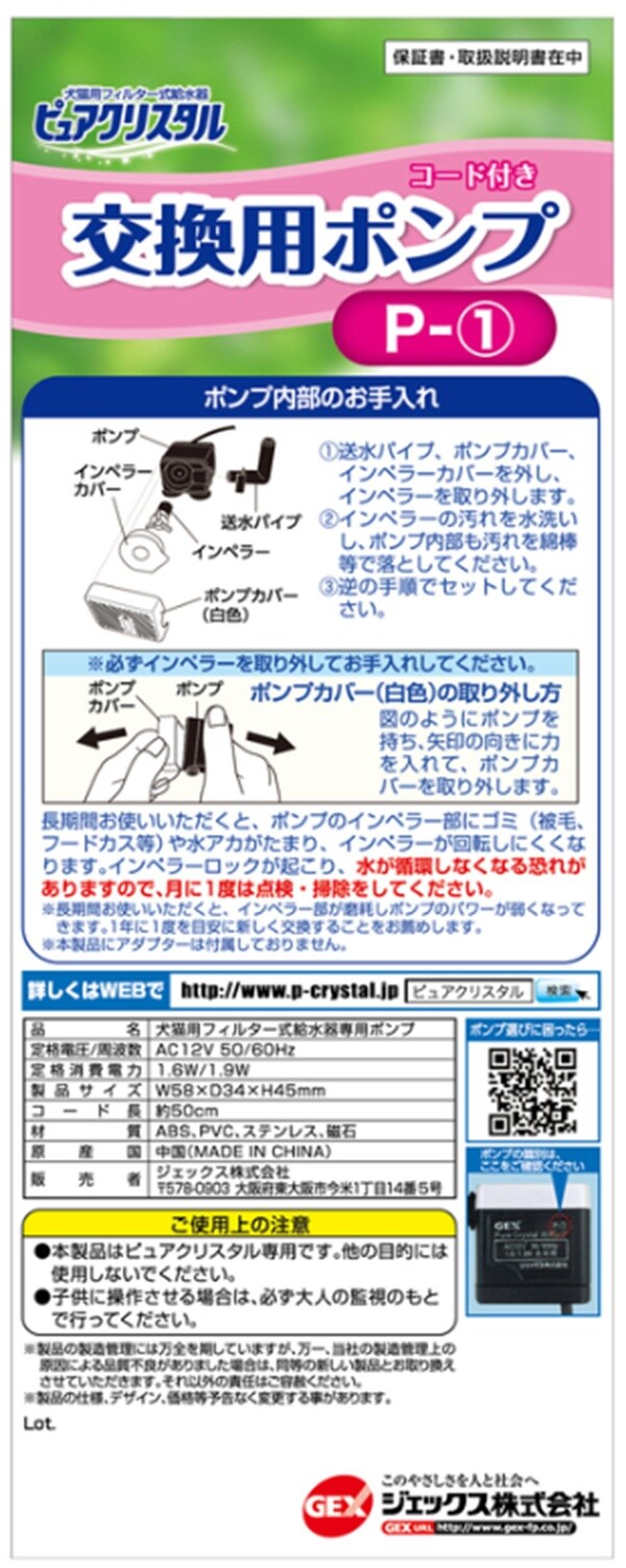[2個]ジェックス ピュアクリスタル 交換用ポンプ P-1 | ポンプのパワーが低下する前に早めの交換を!