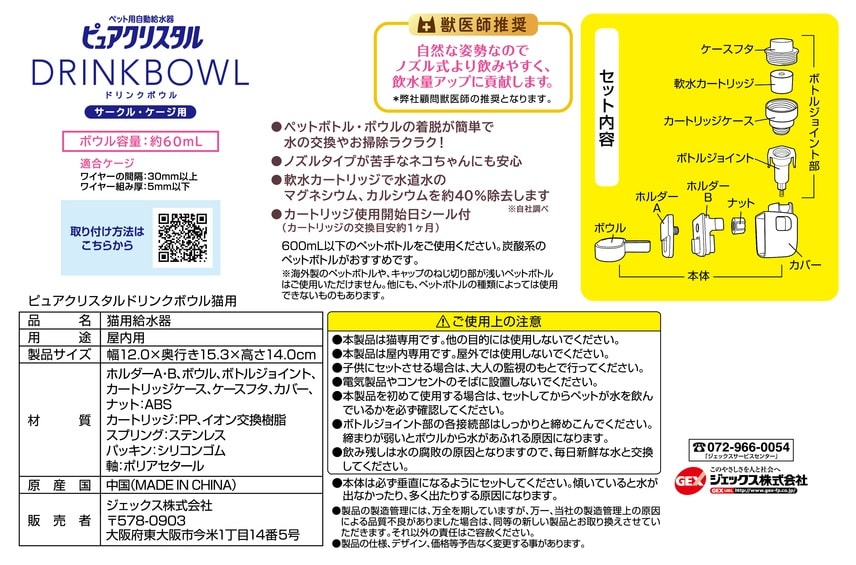 [4個]ジェックス CA事業部 ピュアクリスタル ドリンクボウル猫用 | 下部尿路の健康維持に