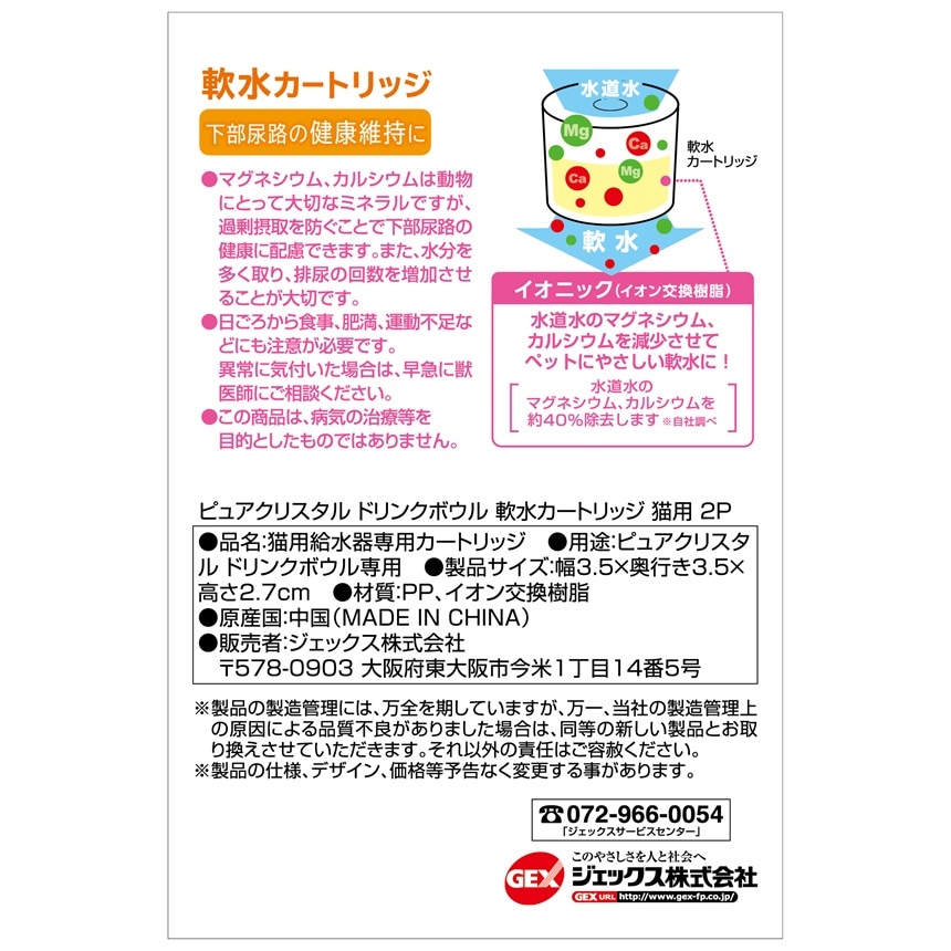 [12個]ジェックス CA事業部 ピュアクリスタル ドリンクボウル 軟水カートリッジ猫用 2個入 | 下部尿路の健康維持に