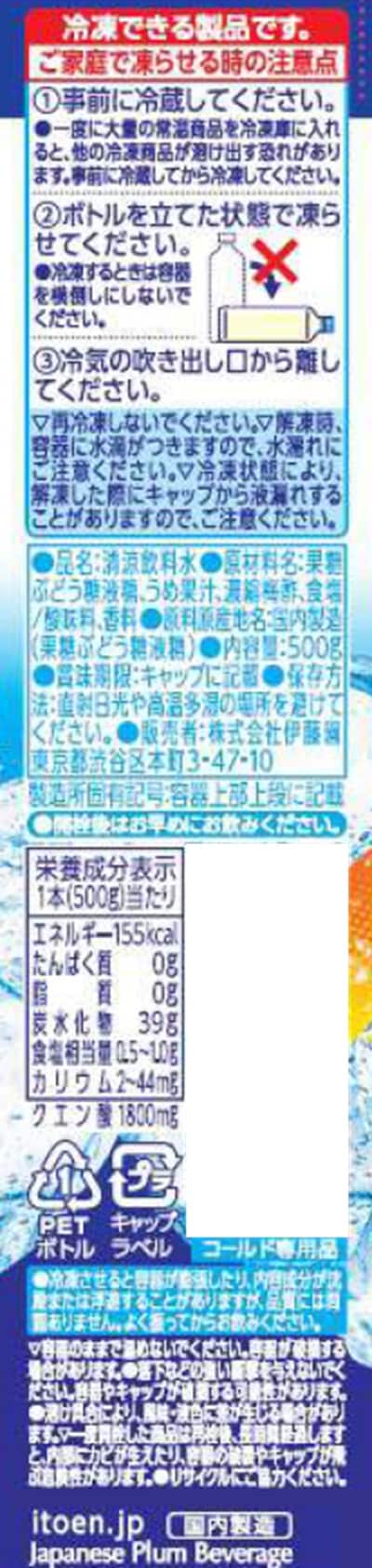 [24本]伊藤園 冷梅 PET (冷凍兼用ボトル) 500g | 梅の甘酸っぱい味わいで暑さをのりきる熱中症対策飲料
