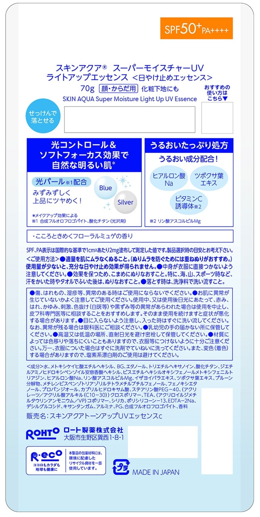 [24個]ロート製薬 スキンアクア スーパーモイスチャーUV ライトアップエッセンス 70g | 光コントロールで自然な明るい肌に