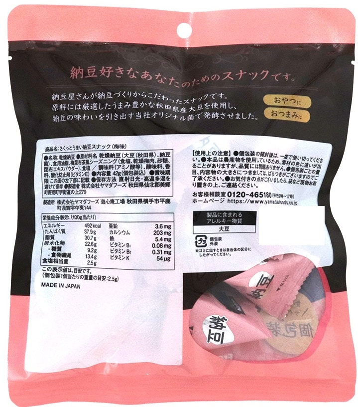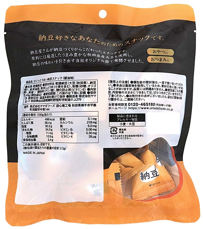 [2種計24袋]ヤマダフーズ さくっとうまい納豆スナック (醤油味 45g / 梅味 42g) | 素材と美味しさにこだわった風味を活かしたサクサク食感のお菓子です。
