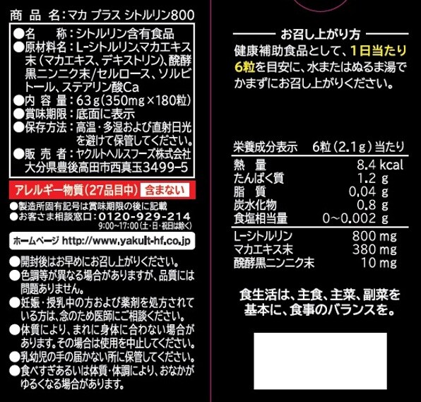 [12個]ヤクルトヘルスフーズ マカプラスシトルリン800 180粒 | 「マカ」+「シトルリン」でスタミナサポートの男性向けサプリメント!
