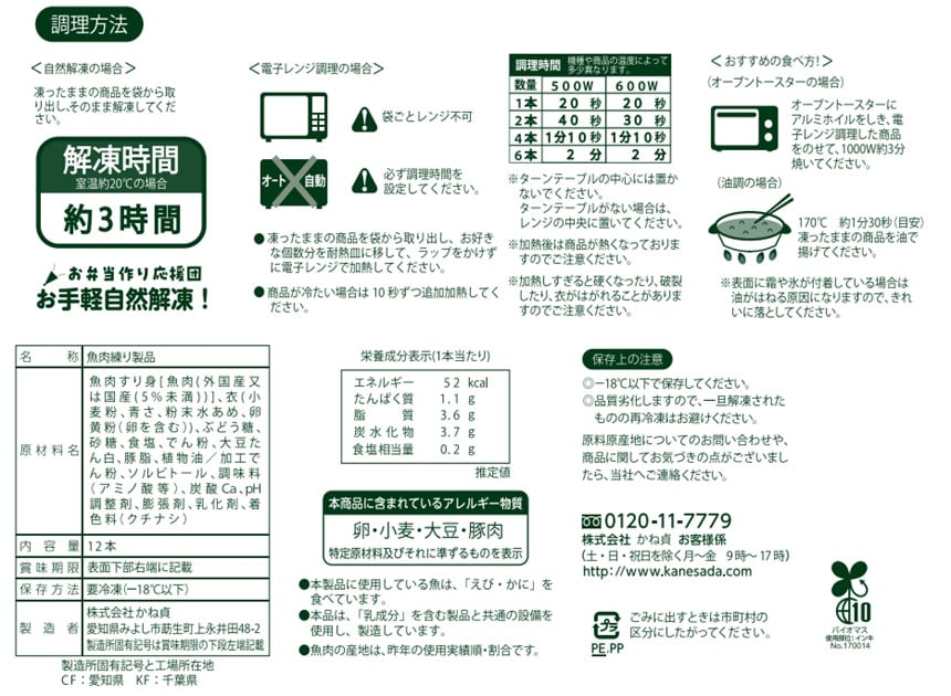 レンジアップだけでも、油で揚げても、自然解凍でも召し上がれます。