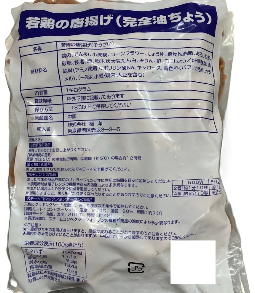 ・若鶏の唐揚げ 完全油ちょう 1000g×1袋