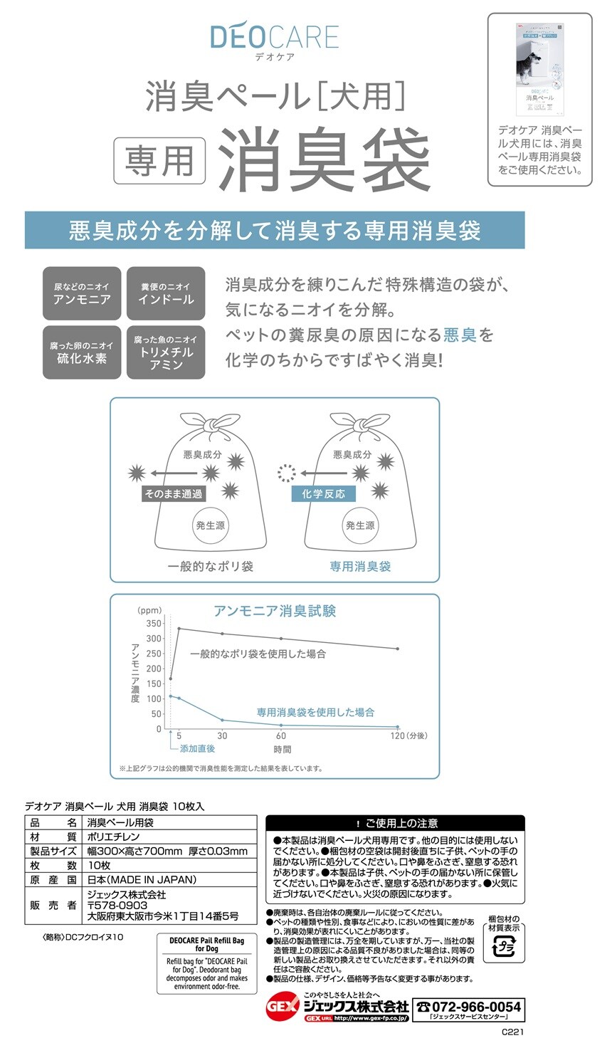 [12個]ジェックス デオケア 消臭ペール 犬用 消臭袋 10枚入 | 心地よい清潔な空間使用済シーツのイヤなニオイを分解