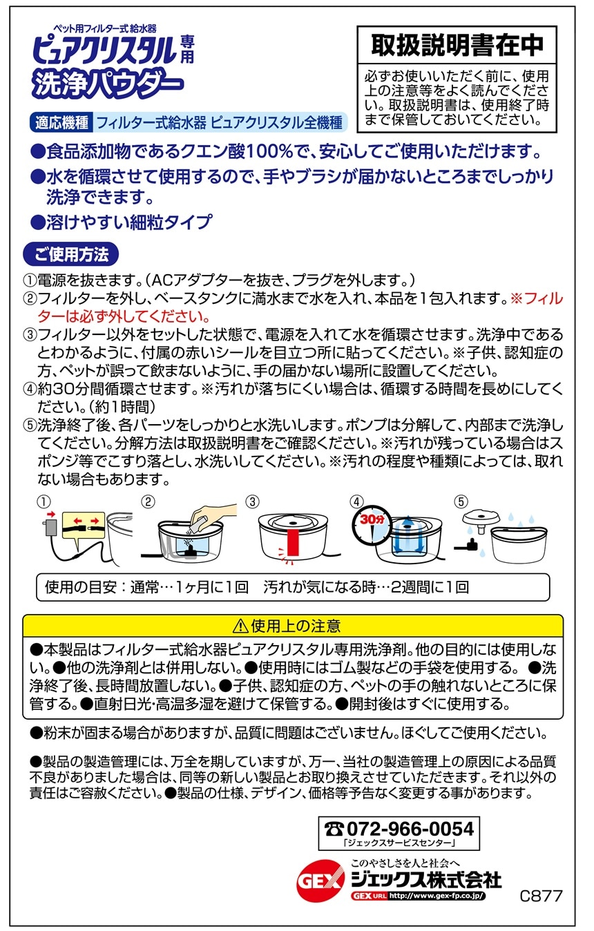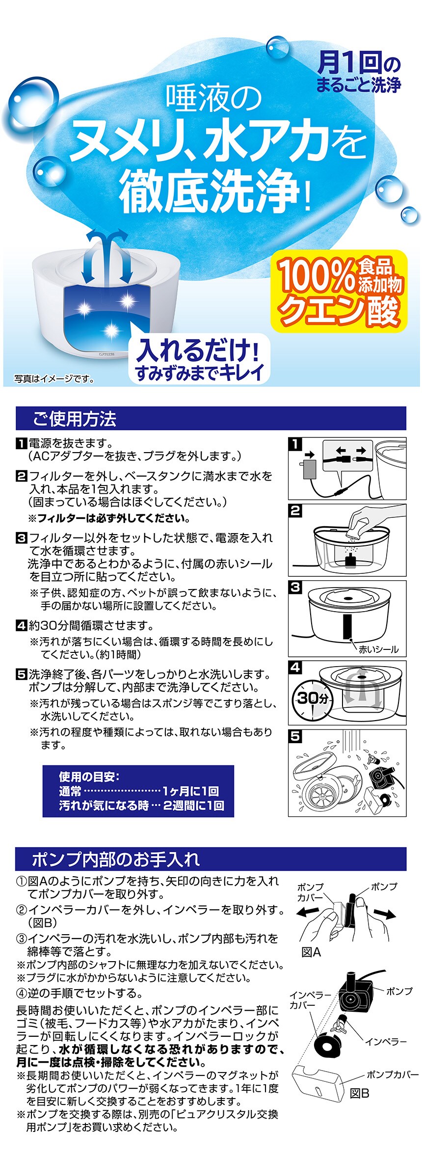 ・ペット用フィルター式給水器「ピュアクリスタル」専用の洗浄パウダーです。