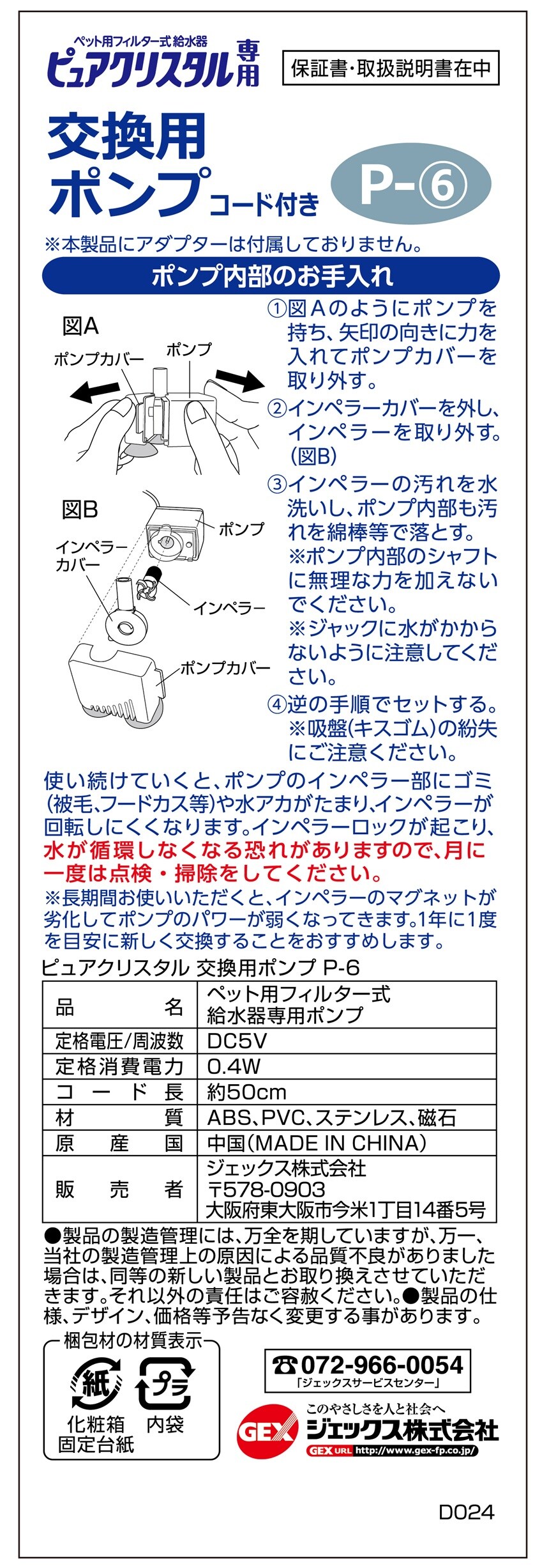 [6個]ジェックス CA事業部 ピュアクリスタル 交換用ポンプ P-6 | ポンプのパワーが低下する前に早めの交換を!