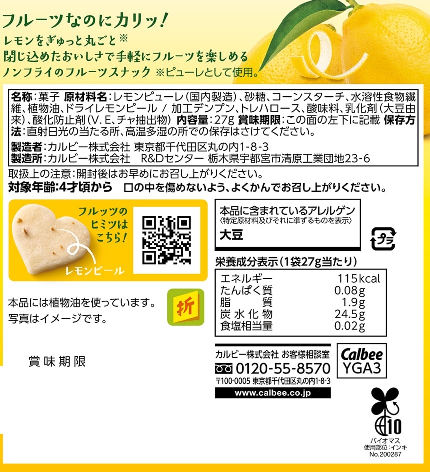 - フルーツスナック フルッツレモン 27g