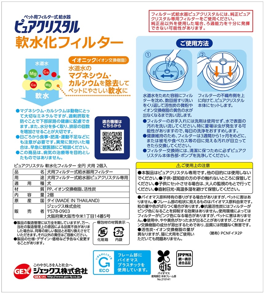- ピュアクリスタル 軟水化フィルター 全円 犬用 2個入