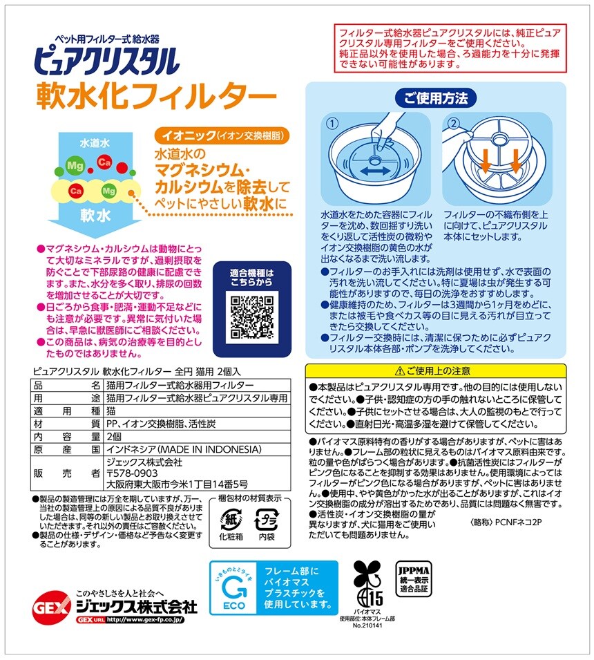 - ピュアクリスタル 軟水化フィルター 全円 猫用 2個入