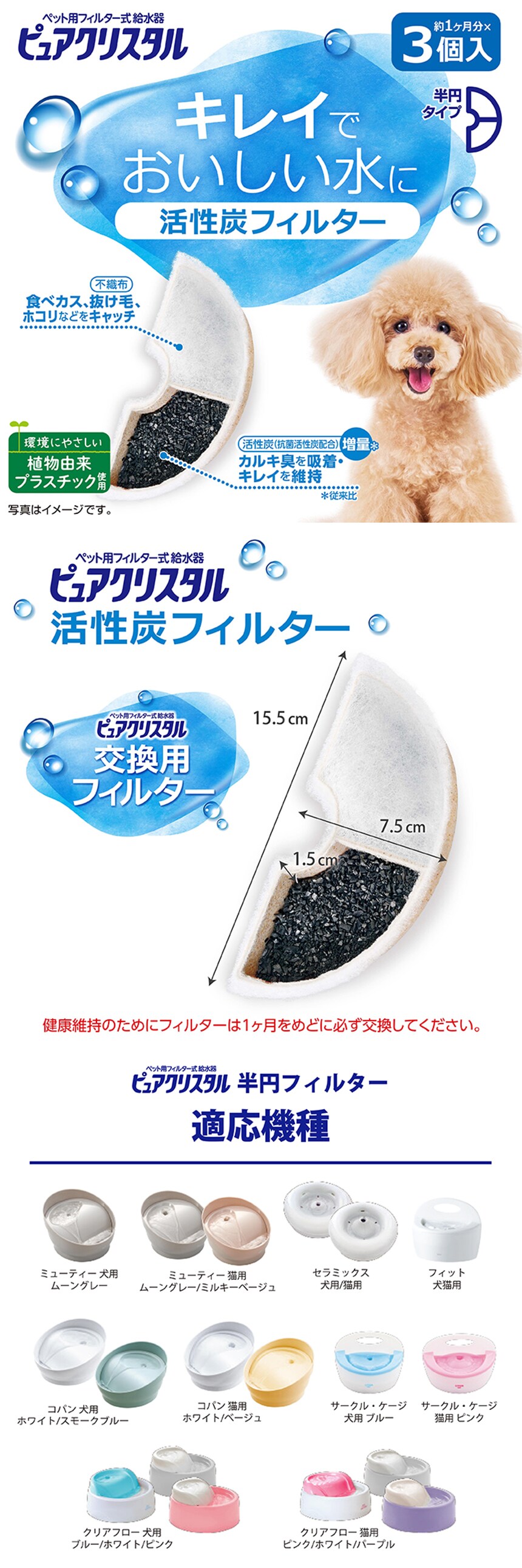 - ピュアクリスタル 活性炭フィルター 半円 犬用 3個入