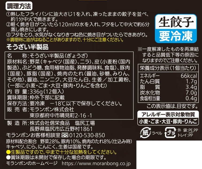 - ジャン 焼肉の生だれ 配合 大粒肉餃子 336g(12個入)