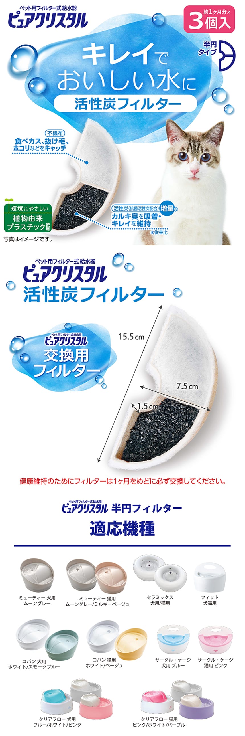 - ピュアクリスタル 活性炭フィルター 半円 猫用 3個入