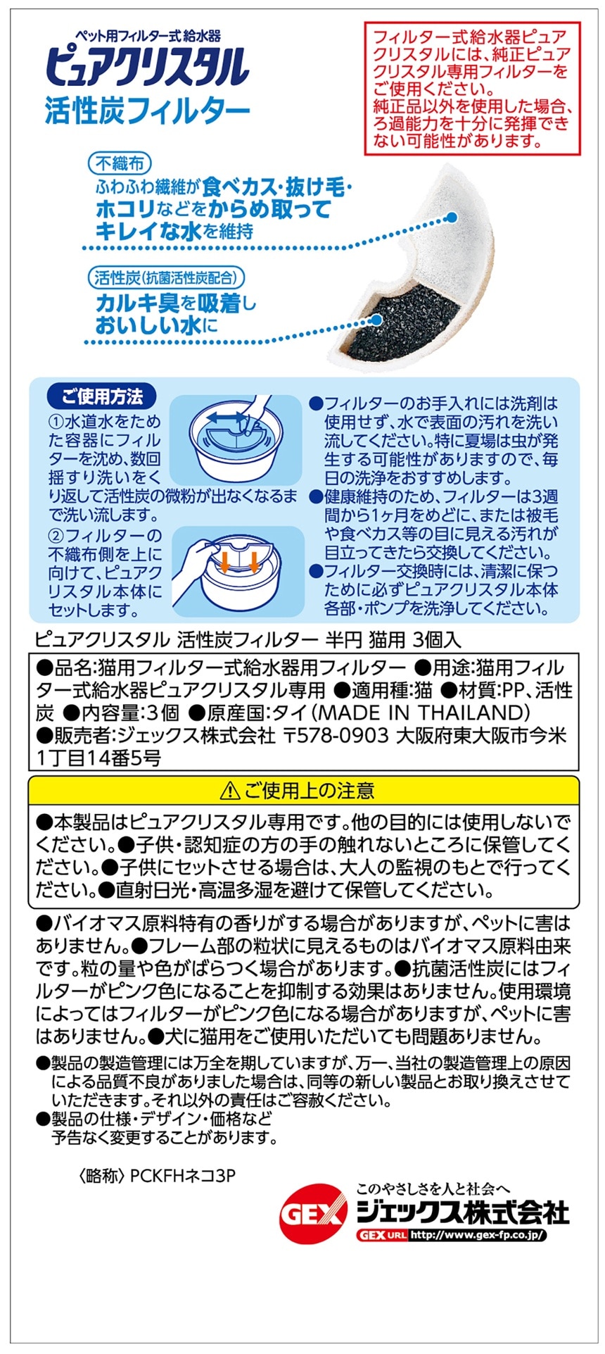 - ピュアクリスタル 活性炭フィルター 半円 猫用 3個入