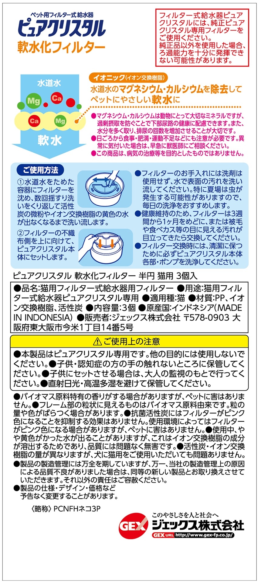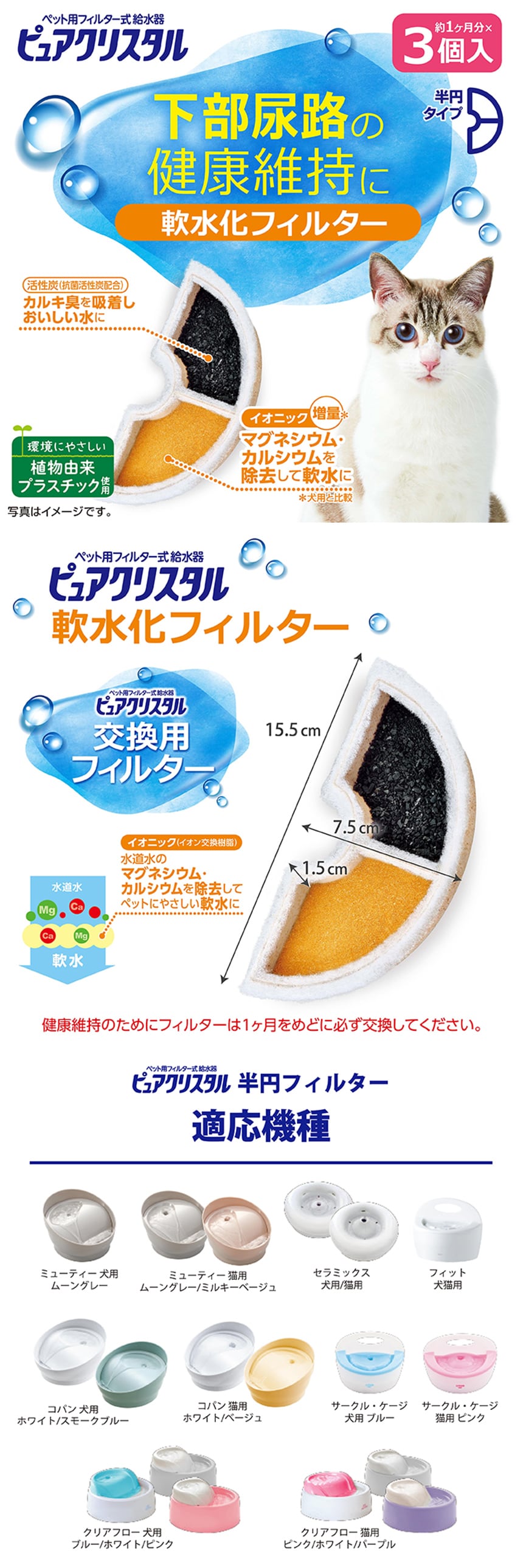 - ピュアクリスタル 軟水化フィルター 半円 猫用 3個入