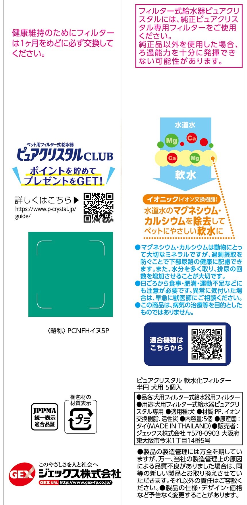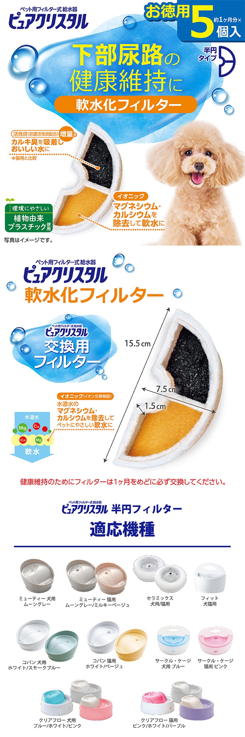 - ピュアクリスタル 軟水化フィルター 半円 犬用 5個入