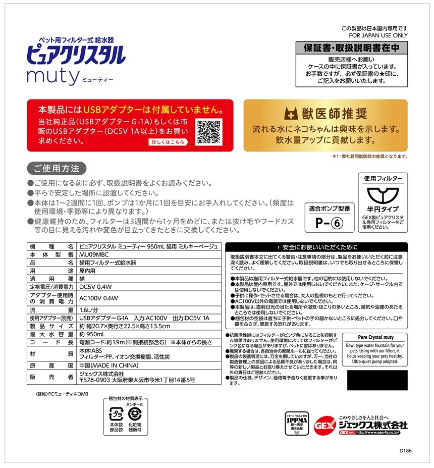 [1個]ジェックス CA事業部 ピュアクリスタル ミューティー 950mL 猫用 ミルキーベージュ | はじめてでも飲みやすいお皿タイプ!