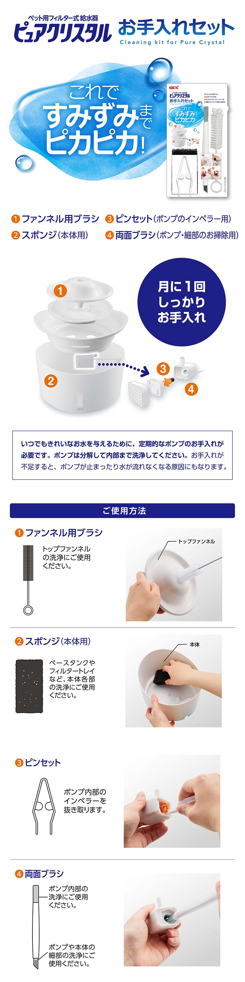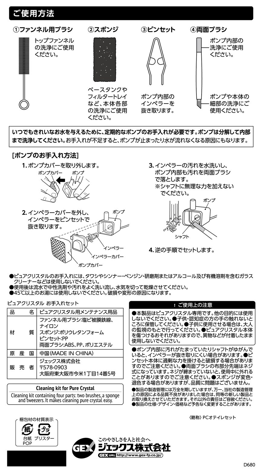 ピュアクリスタル専用のお手入れ4点セットです。細かい部分までピカピカに