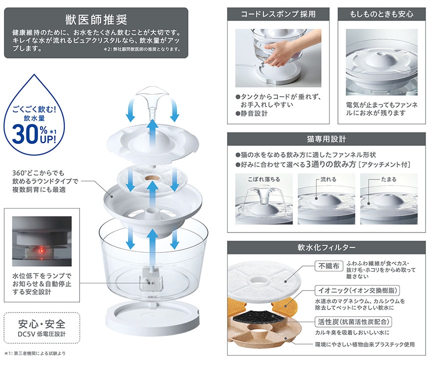 [1個]ジェックス CA事業部 ピュアクリスタル グラッシーR 1.5L 猫用 | いつでも清潔でおいしい水を!
