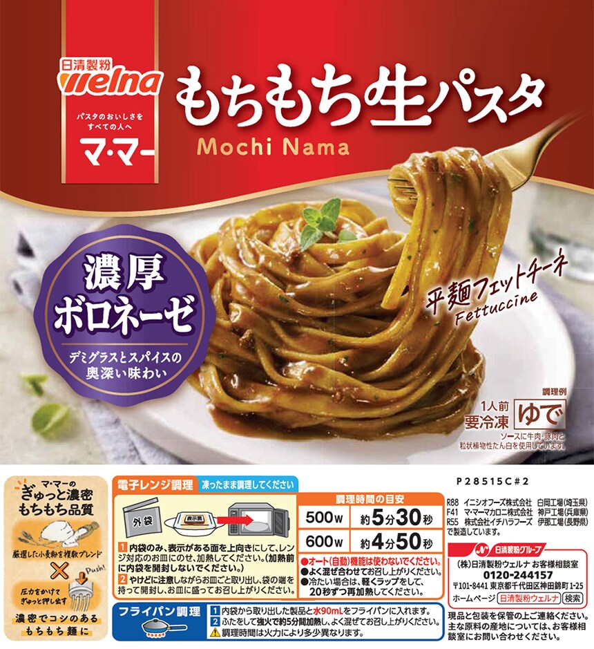 [冷凍]日清製粉ウェルナ マ・マー もちもち生パスタ 濃厚ボロネーゼ 285g×14個 | こだわりのもちもち食感フェットチーネ!デミグラスとスパイスの奥深い味わいが広がる濃厚ボロネーゼ。