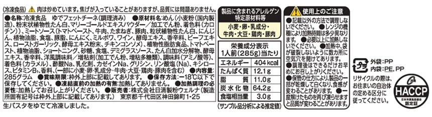 - [冷凍]日清製粉ウェルナ マ・マー もちもち生パスタ 濃厚ボロネーゼ 285g×7個