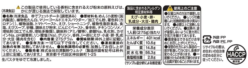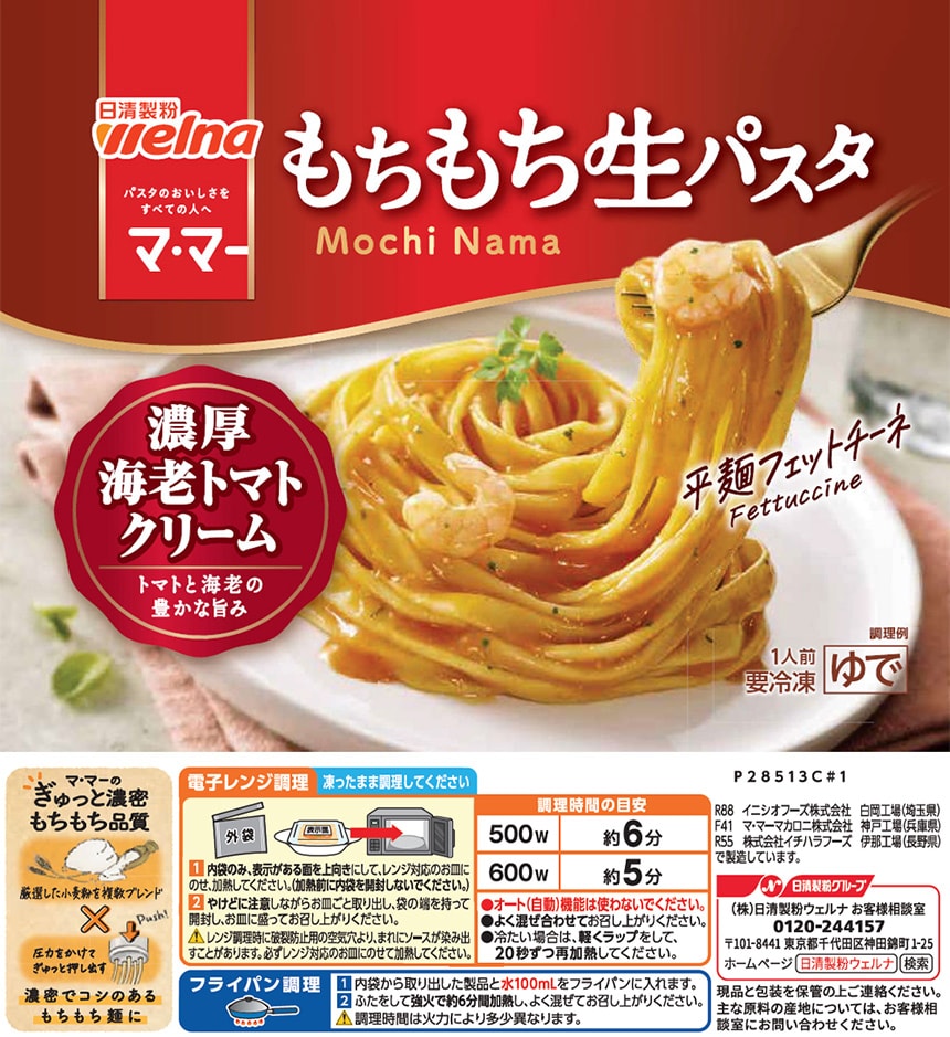 [冷凍]日清製粉ウェルナ マ・マー もちもち生パスタ 濃厚海老トマトクリーム 275g×14個 | こだわりのもちもち食感フェットチーネ!海老とトマトの旨みが溶け込んだ濃厚トマトクリーム。