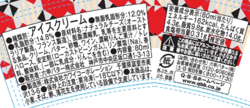※アイスクリーム類は、-18度以下での冷凍保存の状態では、品質の劣化が極めて小さい食品ということで、賞味期限の設定がされておりません。
