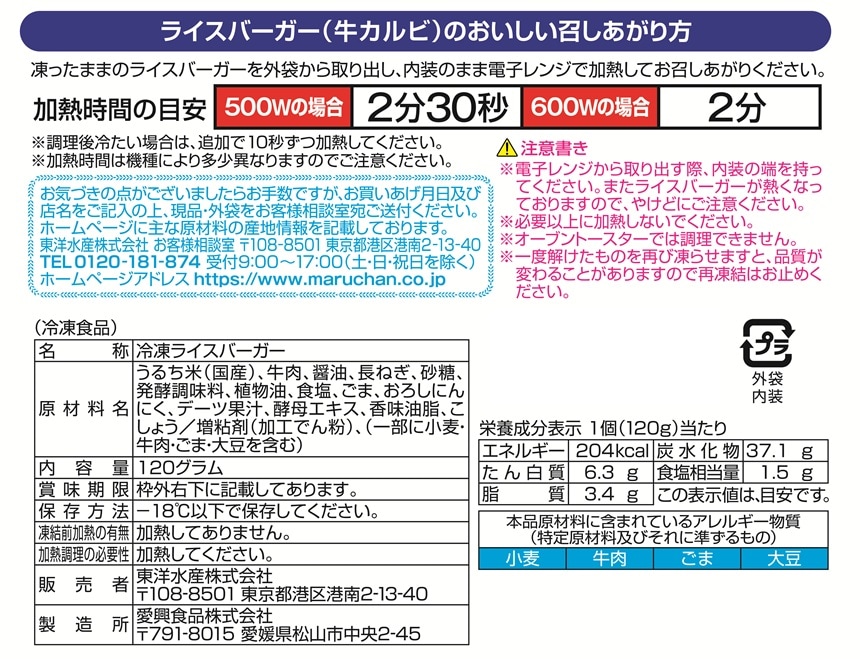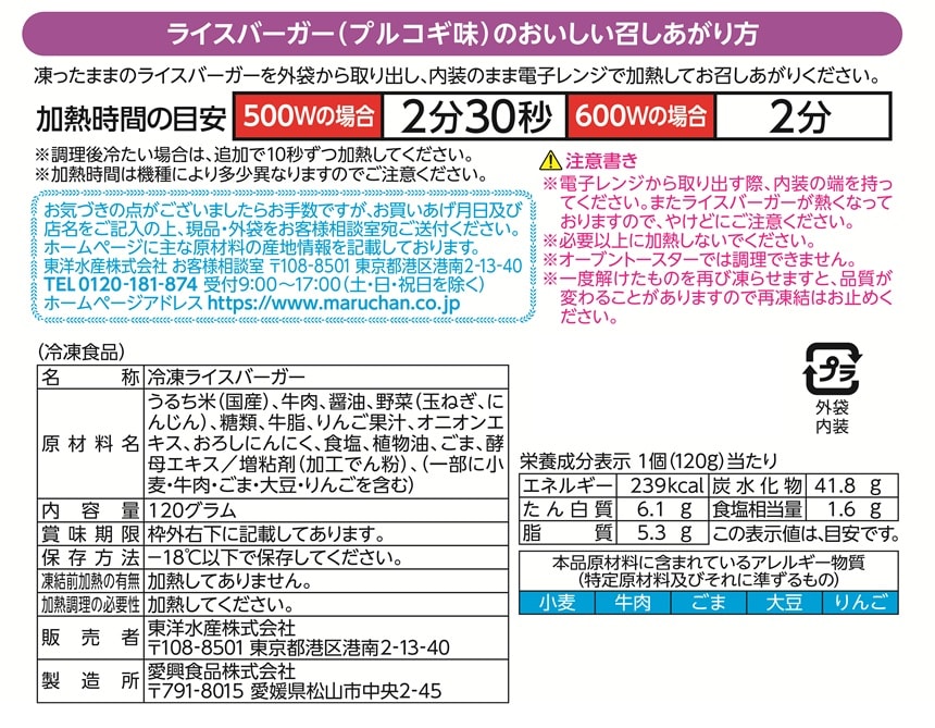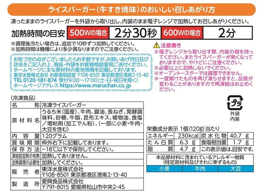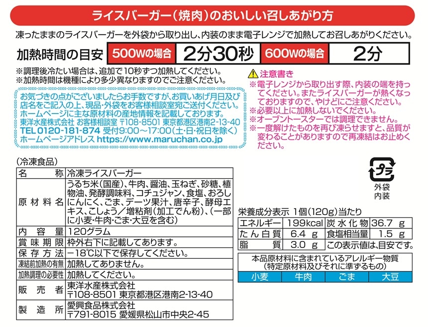 - [冷凍]【6種計6個】東洋水産ライスバーガーセット(焼肉/牛...