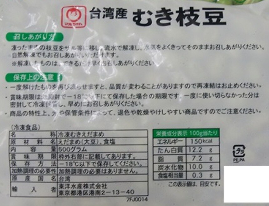 - [冷凍]【8袋】業務用 台湾産むき枝豆 500g