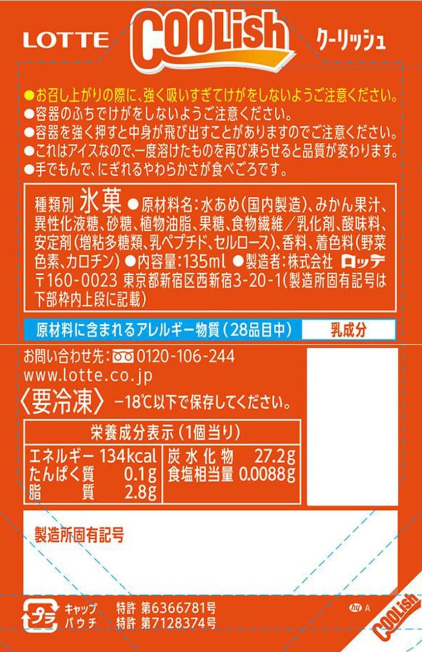 - [冷凍]ロッテ クーリッシュ 濃密みかん 135ml×12個