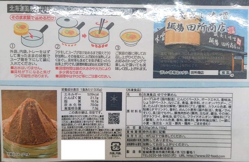 - [冷凍]マルニ食品 麺場 田所商店監修 北海道風あわせ味噌ラーメン 1食分×8袋