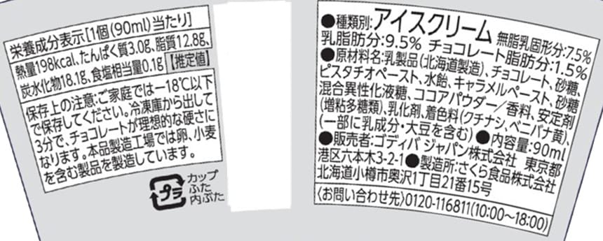 ※アイスクリーム類は、-18度以下での冷凍保存の状態では、品質の劣化が極めて小さい食品ということで、賞味期限の設定がされておりません。
